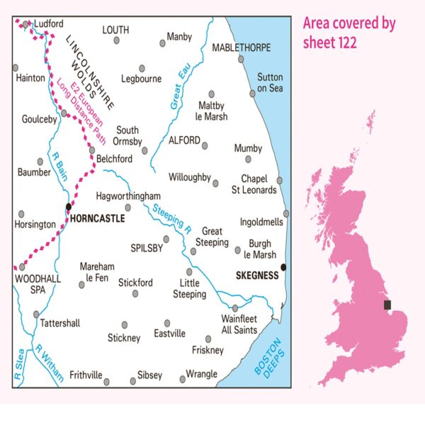 Kaarten en gidsen > Wandelen > Wandelkaarten > Europa > Britse Eilanden > Groot-Brittannië > Engeland > Oost-Engeland > LR-122 Skegness | topografische wandelkaart