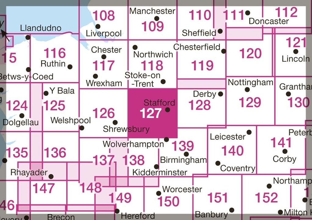 Kaarten en gidsen > Wandelen > Wandelkaarten > Europa > Britse Eilanden > Groot-Brittannië > Engeland > Birmingham, Cotswolds, Oxford > LR-127 Stafford + Telford, Ironbridge | topografische wandelkaart