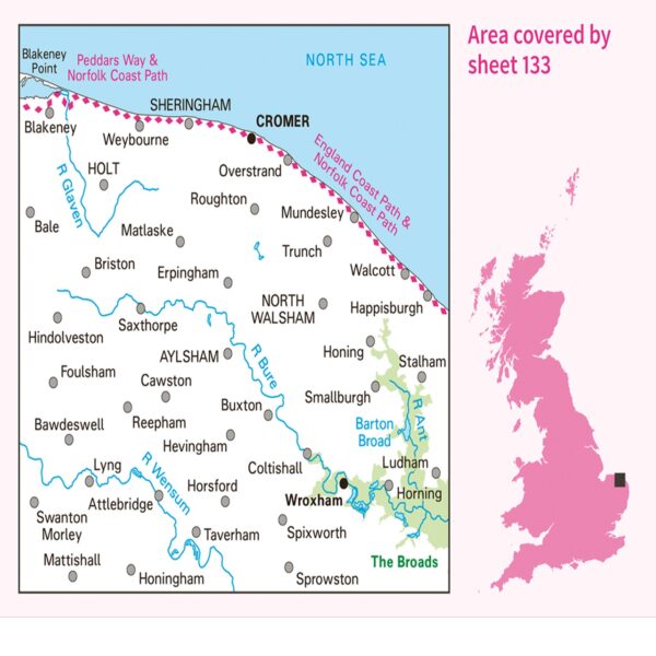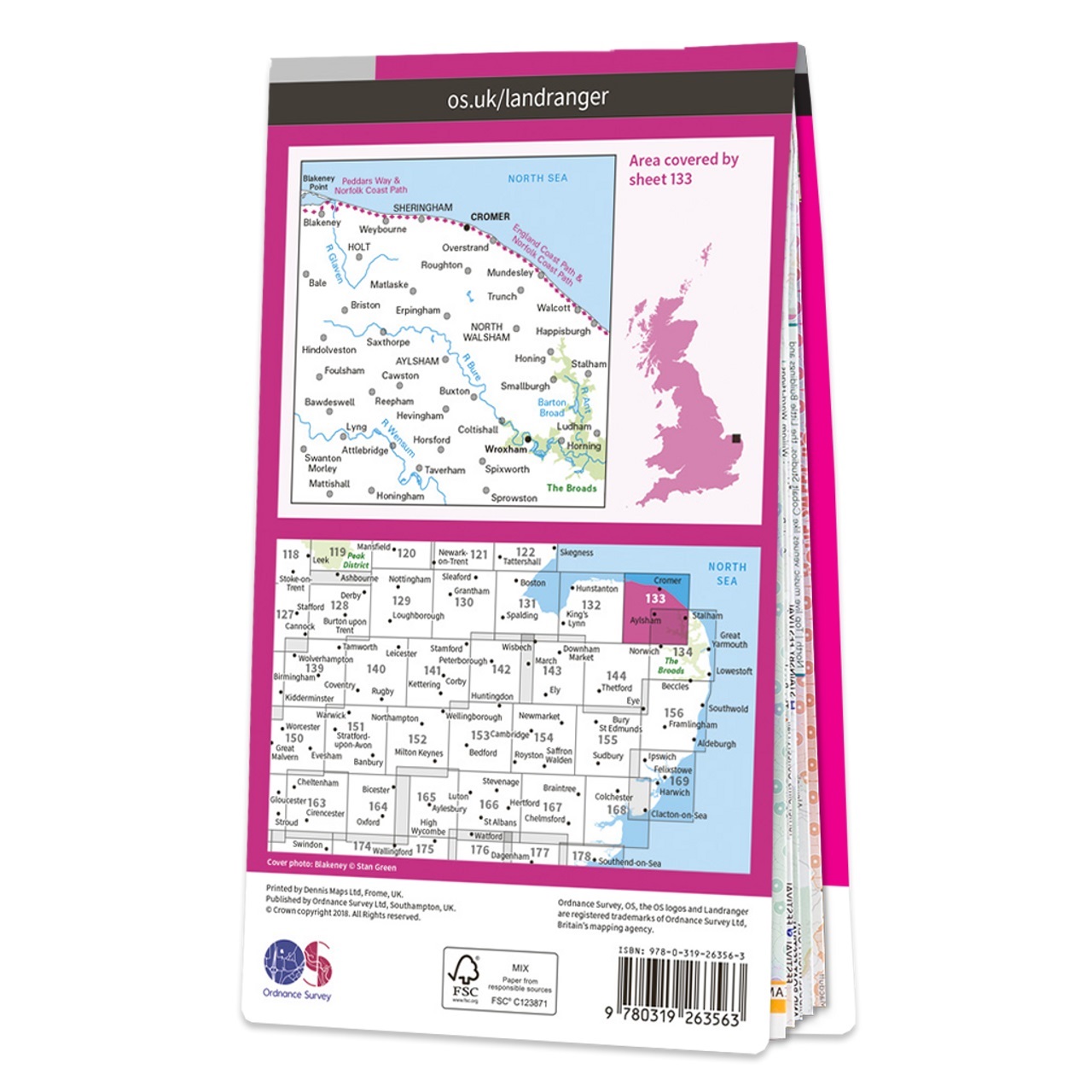 Kaarten en gidsen > Wandelen > Wandelkaarten > Europa > Britse Eilanden > Groot-Brittannië > Engeland > Oost-Engeland > LR-133 North East Norfolk, Cromer + Wroxham | topografische wandelkaart