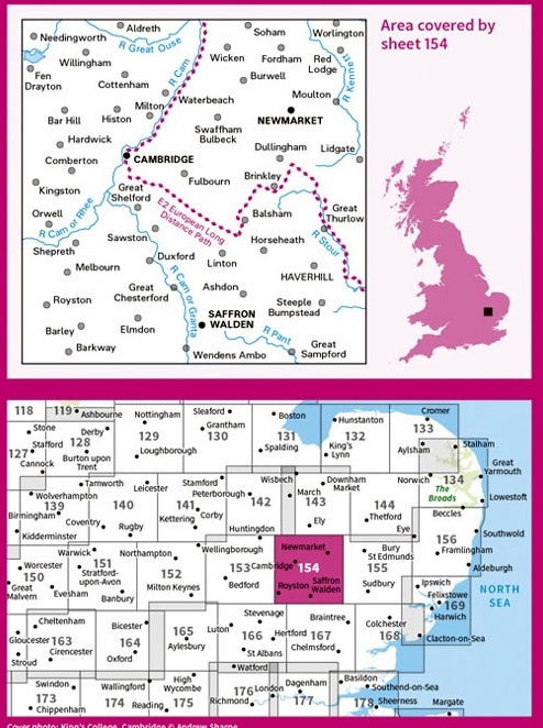 Kaarten en gidsen > Wandelen > Wandelkaarten > Europa > Britse Eilanden > Groot-Brittannië > Engeland > Oost-Engeland > LR-154 Cambridge, Newmarket | topografische wandelkaart