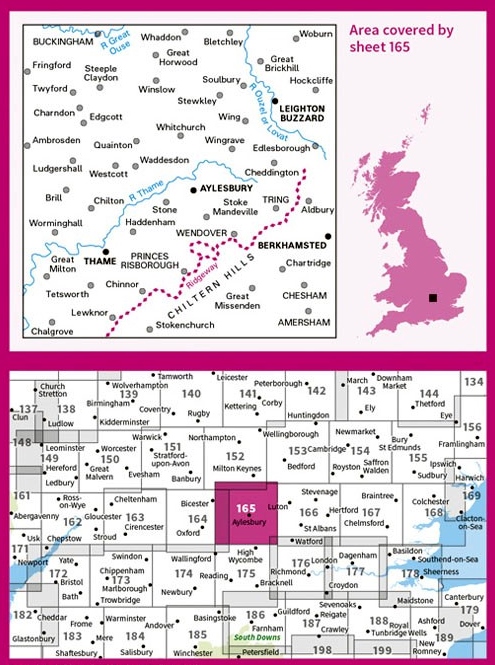 Kaarten en gidsen > Wandelen > Wandelkaarten > Europa > Britse Eilanden > Groot-Brittannië > Engeland > Birmingham, Cotswolds, Oxford > LR-165 Aylesbury + Leighton Buzzard | topografische wandelkaart