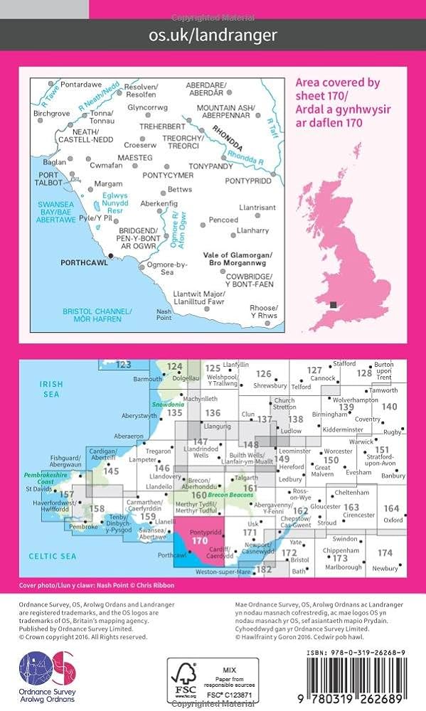 Kaarten en gidsen > Wandelen > Wandelkaarten > Europa > Britse Eilanden > Groot-Brittannië > Wales > Zuid-Wales, Pembrokeshire, Brecon Beacons > LR-170 Vale of Glamorgan | topografische wandelkaart