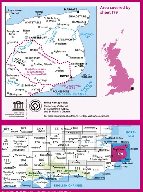 Kaarten en gidsen > Wandelen > Wandelkaarten > Europa > Britse Eilanden > Groot-Brittannië > Engeland > Zuidoost-Engeland > LR-179 Canterbury & East Kent | topografische wandelkaart