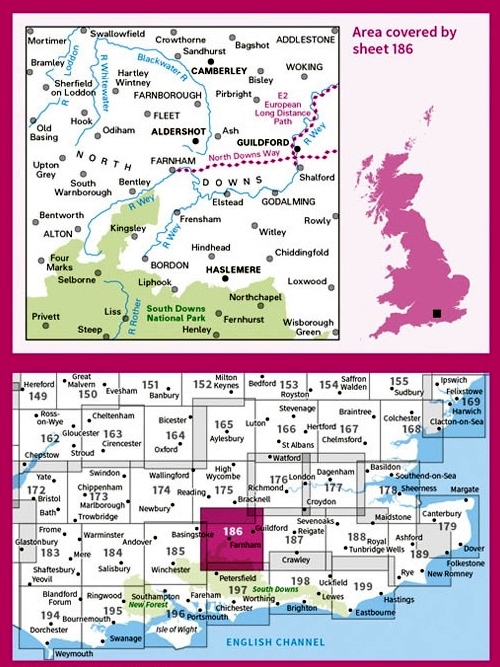 Kaarten en gidsen > Wandelen > Wandelkaarten > Europa > Britse Eilanden > Groot-Brittannië > Engeland > Zuidoost-Engeland > LR-186 Aldershot, Guildford | topografische wandelkaart
