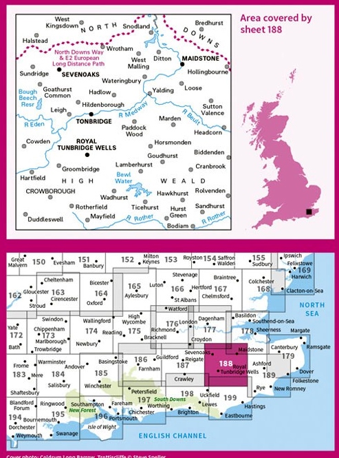 Kaarten en gidsen > Wandelen > Wandelkaarten > Europa > Britse Eilanden > Groot-Brittannië > Engeland > Zuidoost-Engeland > LR-188 Maidstone, The Weald of Kent | topografische wandelkaart