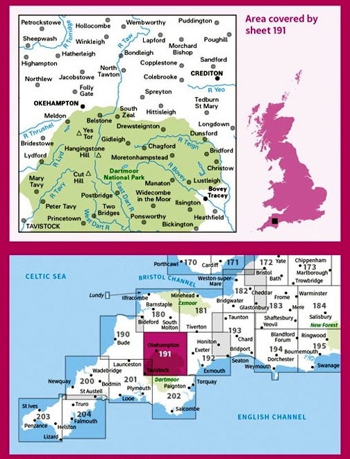 Kaarten en gidsen > Wandelen > Wandelkaarten > Europa > Britse Eilanden > Groot-Brittannië > Engeland > West Country > LR-191 Okehampton + North Dartmoor | topografische wandelkaart