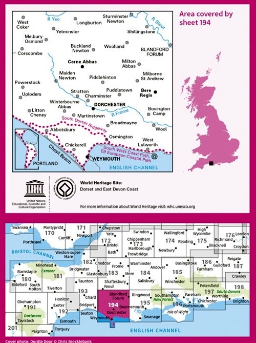 Kaarten en gidsen > Wandelen > Wandelkaarten > Europa > Britse Eilanden > Groot-Brittannië > Engeland > West Country > LR-194 Dorchester, Weymouth | topografische wandelkaart