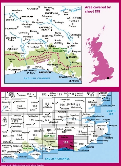 Kaarten en gidsen > Wandelen > Wandelkaarten > Europa > Britse Eilanden > Groot-Brittannië > Engeland > Zuidoost-Engeland > LR-198 Brighton + The Downs | topografische wandelkaart