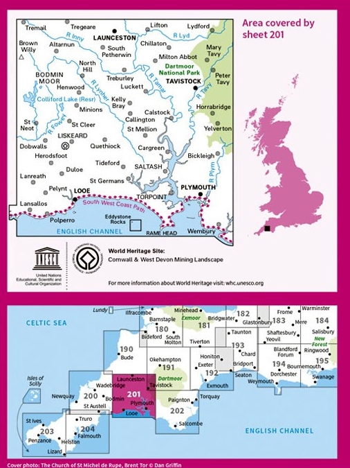 Kaarten en gidsen > Wandelen > Wandelkaarten > Europa > Britse Eilanden > Groot-Brittannië > Engeland > West Country > LR-201 Plymouth + Launceston | topografische wandelkaart