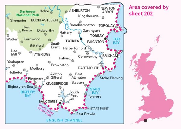 Kaarten en gidsen > Wandelen > Wandelkaarten > Europa > Britse Eilanden > Groot-Brittannië > Engeland > West Country > LR-202 Torbay + South Dartmoor | topografische wandelkaart
