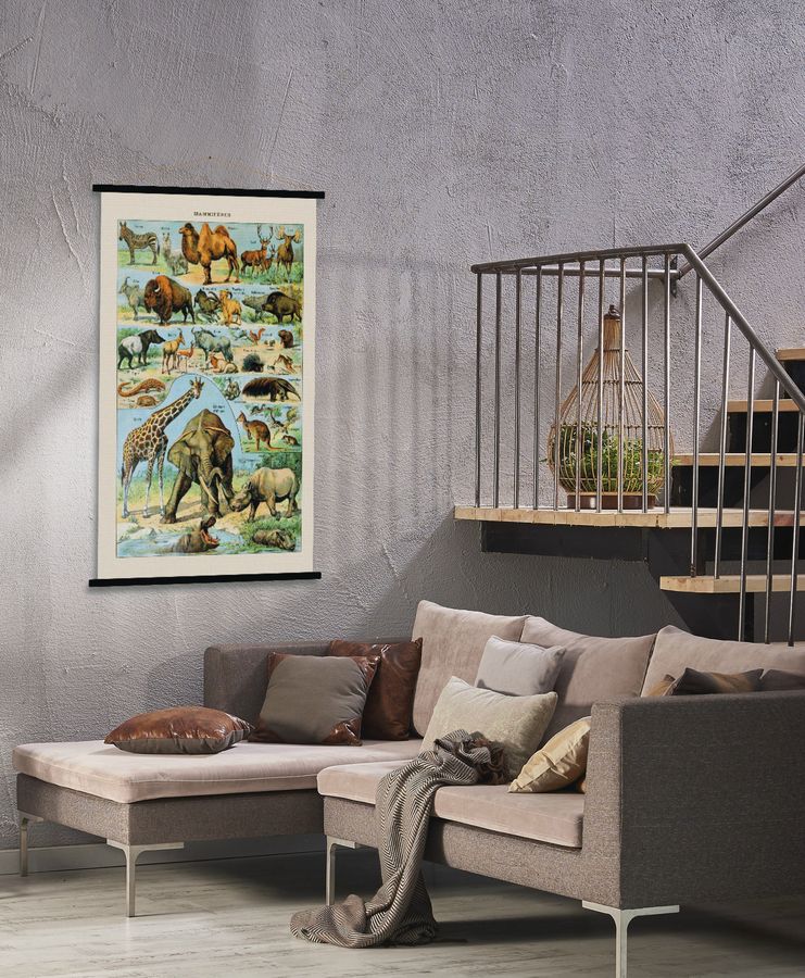Deze collectie prachtige Franse kaarten dateert uit het begin van de 20ste eeuw. Hoogwaardige kwaliteit, gedrukt op canvas, aan boven- en onderkant een houten lat en met een ruw katoenen ophangtouw. Continent, land, hoofdstad of natuur, deze kaarten creëren een unieke vintage sfeer in huis en nodigen uit om te reizen.