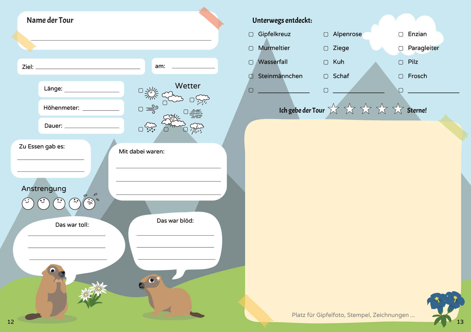Mit dem individuell gestalteten Wandertagebuch werden das Erlebte am Berg und die Abenteuer draußen in der Natur zu einem wunderschönen Erinnerungsschatz.