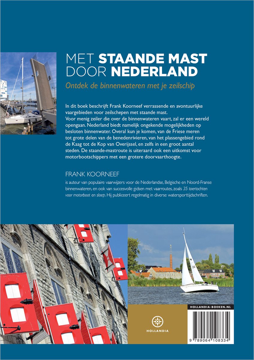 Met staande mast door Nederland: een nieuw vaarrouteboek In 'Met staande mast door Nederland' beschrijft Frank Koorneef het verrassende en avontuurlijke vaargebied voor zeilschepen met staande mast. Voor menig zeiler die over de Nederlandse binnenwateren vaart gaat een wereld open. Nederland biedt namelijk ongekende mogelijkheden op besloten binnenwater. Dé expert van de Nederlandse binnenwateren toont de mooiste plekken Overal kun je komen met je zeilschip, van de Friese meren tot grote delen van de benedenrivieren, van het plassengebied rond de Kaag tot de Kop van Overijssel, zelfs in een groot aantal steden. 'Met staande mast door Nederland' is het perfecte boek voor zeilers di eens wat anders dan de zee willen.
