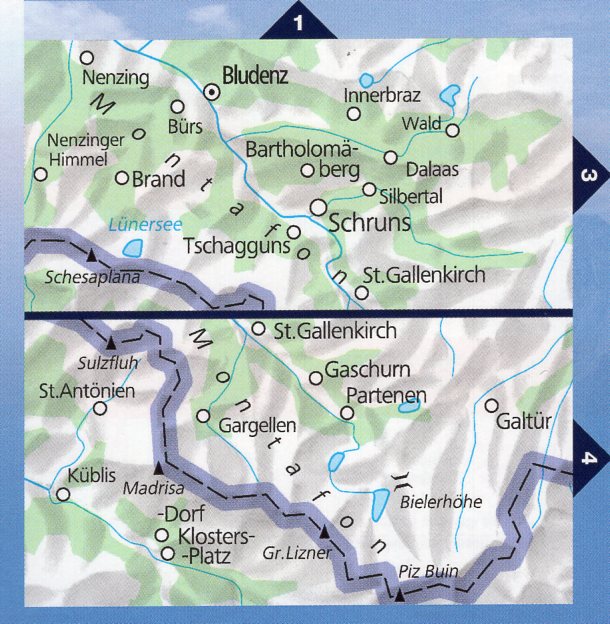Kaarten en gidsen > Wandelen > Wandelkaarten > Europa > Zwitserland en Oostenrijk (en Alpen als geheel) > Oostenrijk > Vorarlberg > Montafon - Silvretta 1:35.000