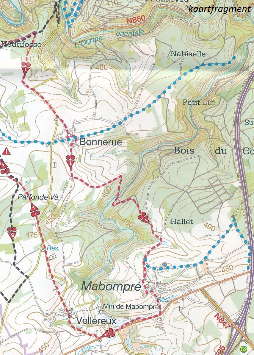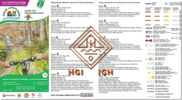 Gedetailleerde kaart voor mountainbikers. Omgeving van: Achouffe, Bérismenil, Bonnerue, Engreux, Filly, Maboge, Mormont, Nadrin, Ollomont, Samrée, Vellereux en Wibrin.