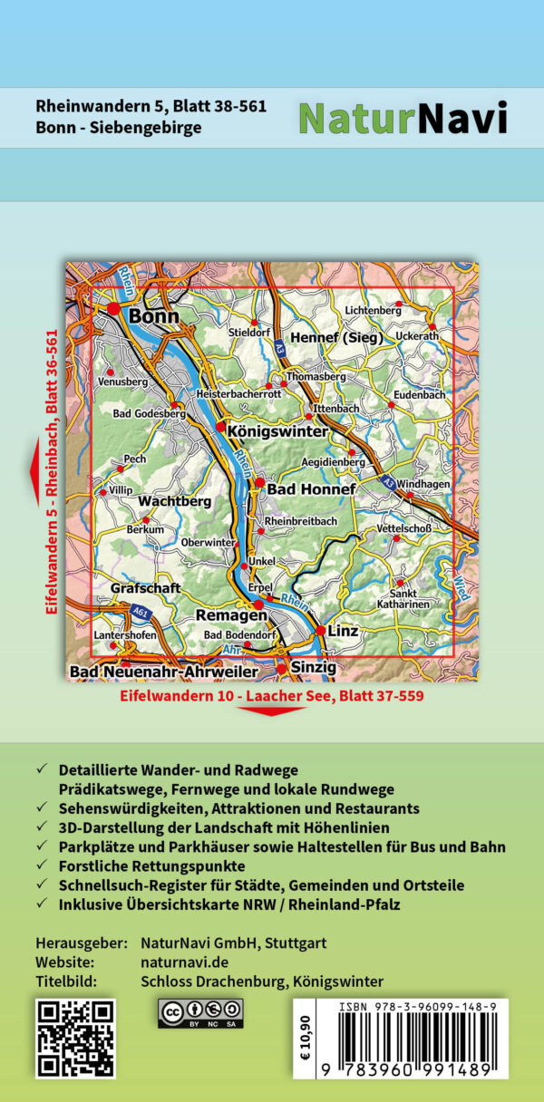 NaturNavi 38-561 wandelkaart Rheinwandern 5 (Bonn, Siebengebirge) 1:25.000