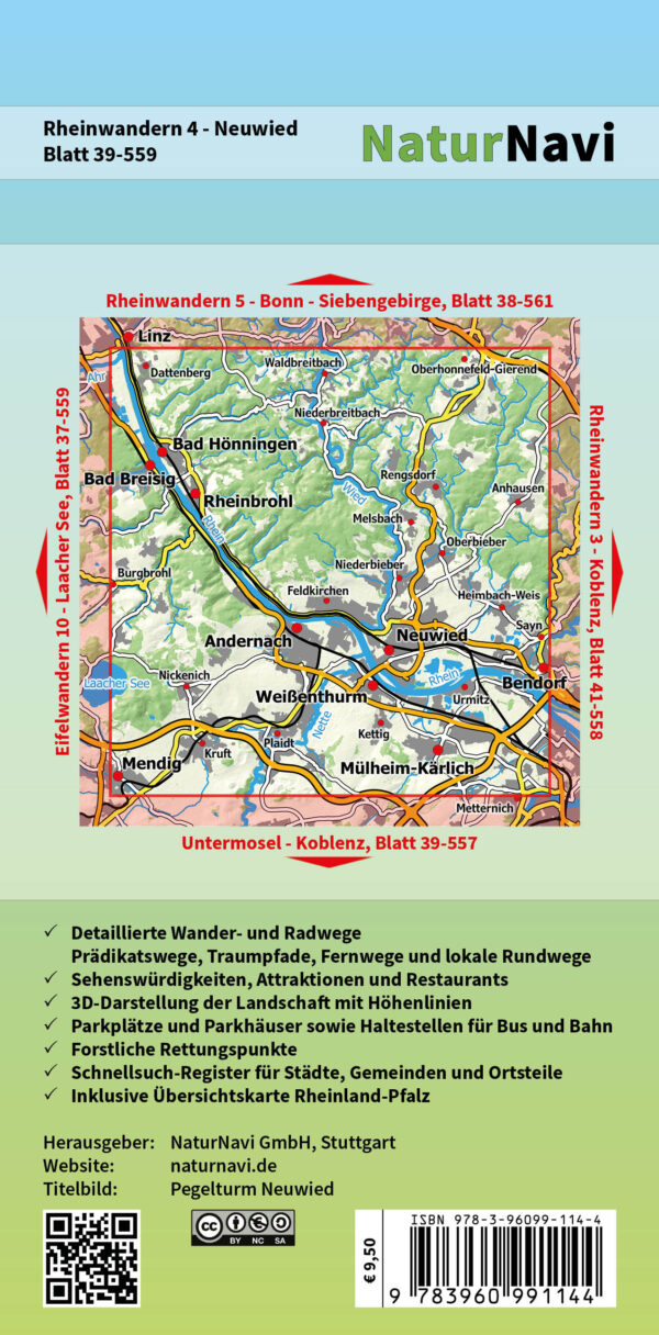 NaturNavi 39-559 wandelkaart Rheinwandern 4 (Neuwied) 1:25.000