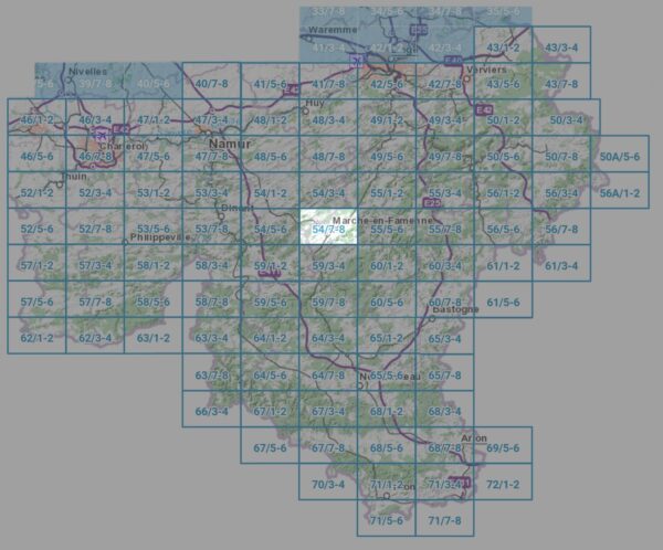 Kaarten en gidsen > Wandelen > Wandelkaarten > Europa > Benelux > België & Luxemburg > Wallonië (Ardennen) > NGI-54/7-8 Aye - Marche-en-Famenne | topografische wandelkaart 1:25.000