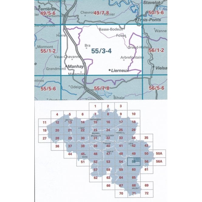 Kaarten en gidsen > Wandelen > Wandelkaarten > Europa > Benelux > België & Luxemburg > Wallonië (Ardennen) > NGI-55/3-4 Bra-Lierneux, Manhay | topografische wandelkaart 1:25.000
