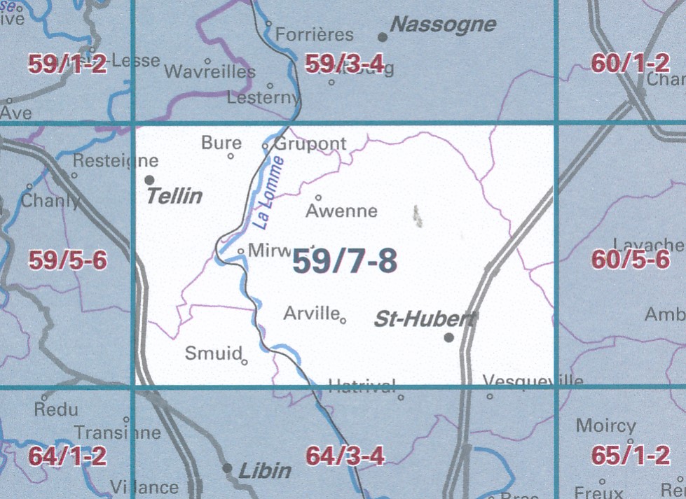 Kaarten en gidsen > Wandelen > Wandelkaarten > Europa > Benelux > België & Luxemburg > Wallonië (Ardennen) > NGI-59/7-8 Grupont-St.Hubert | topografische wandelkaart 1:25.000