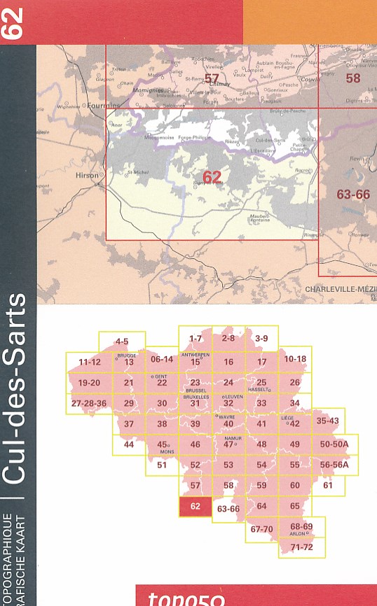 Kaarten en gidsen > Wandelen > Wandelkaarten > Europa > Benelux > België & Luxemburg > Wallonië (Ardennen) > NGI-62 Cul-des-Sarts (topografische kaart 1:50.000)