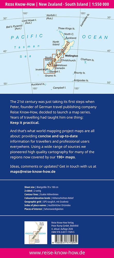 Kaarten en gidsen > Kaarten & plattegronden > Landkaarten en wegenkaarten > Australië, Nieuw Zeeland, Zuid-Pacifische Oceaan > Australië, Papoea Nieuw-Guinea en Nieuw-Zeeland > Nieuw Zeeland > Nieuw-Zeeland Zuideiland | landkaart, wegenkaart 1:550.000