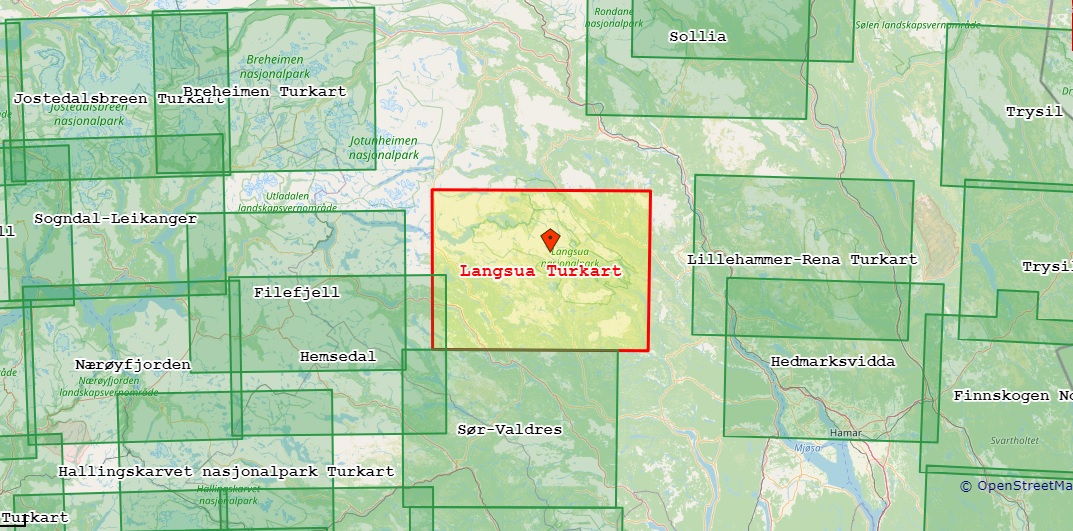 Kaarten en gidsen > Wandelen > Wandelkaarten > Europa > Scandinavië (& Noordpool) > Noorwegen > Midden-Noorwegen > NO-3002 Langsua | topografische wandelkaart 1:50.000