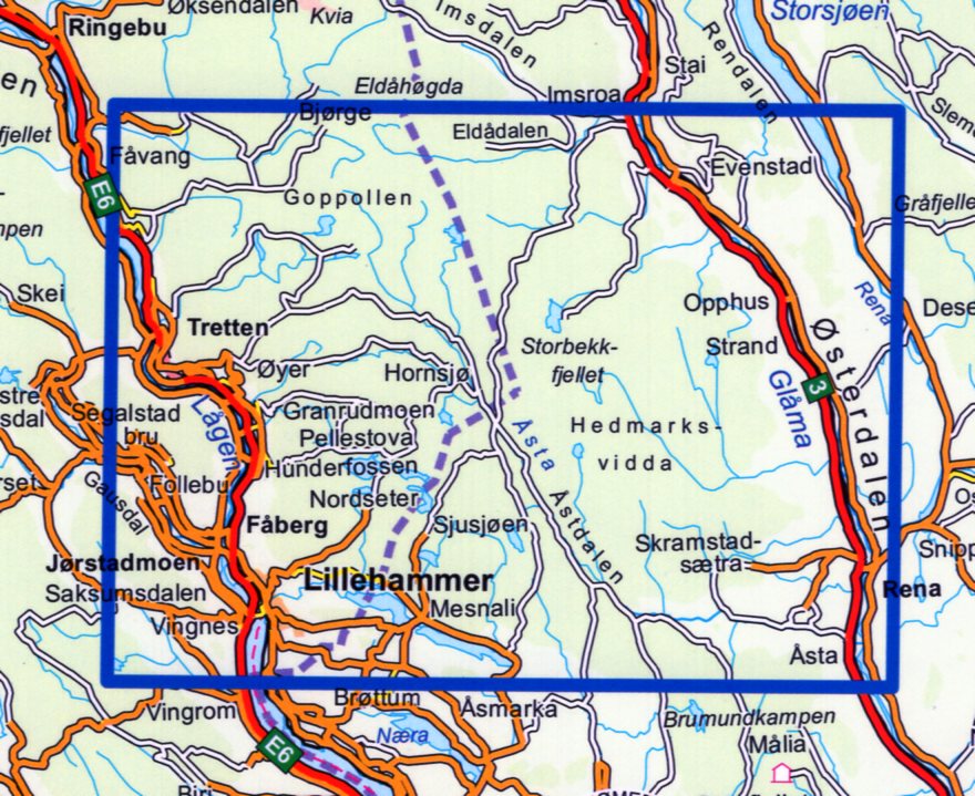 Kaarten en gidsen > Wandelen > Wandelkaarten > Europa > Scandinavië (& Noordpool) > Noorwegen > Zuid-Noorwegen > NO-3008 Lillehammer - Rena | topografische wandelkaart 1:50.000