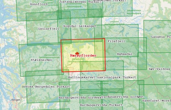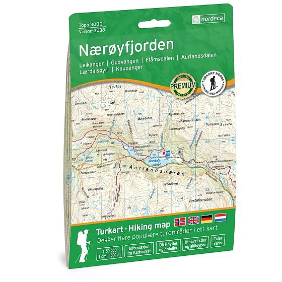 Kaarten en gidsen > Wandelen > Wandelkaarten > Europa > Scandinavië (& Noordpool) > Noorwegen > Zuid-Noorwegen > NO-3038 Nærøyfjorden - Naeroyfjorden | topografische wandelkaart 1:50.000