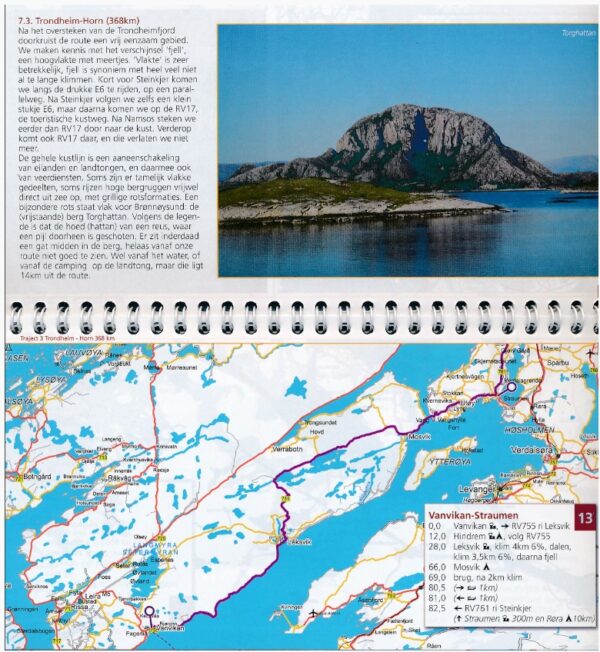 Noorwegen is een berglandschap, ook aan de kust. Vrijwel dagelijks moet er geklommen worden, met 10 klimmeters/km over het hele traject is deze route pittig te noemen. De hellingen zijn echter nergens echt steil, de norm is 6-8%. Wel vaak kilometers achter elkaar.