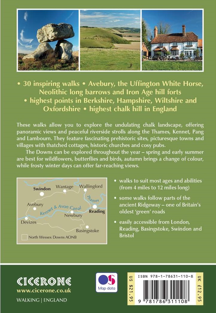 30 walking routes exploring the North Wessex Downs Area of Outstanding Natural Beauty (AONB). The routes are between 7 and 20km through this peaceful rolling chalk landscape and cover parts of four counties: Berkshire, Hampshire, Wiltshire and Oxfordshire, with walks to reach the highest point in each one.