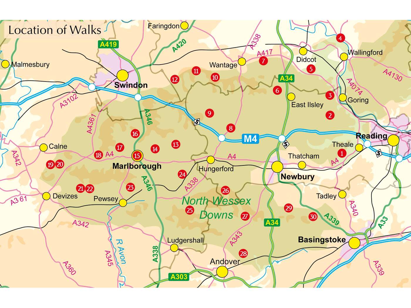 Marlborough, Lambourn, Great Bedwyn, Dorchester on Thames, Hungerford, Pewsey, Kingsclere The walks are also accessible from the following towns outside of the area: Didcot, Wantage, Swindon, Calne, Devizes, Andover, Basingstoke, Newbury and Reading.