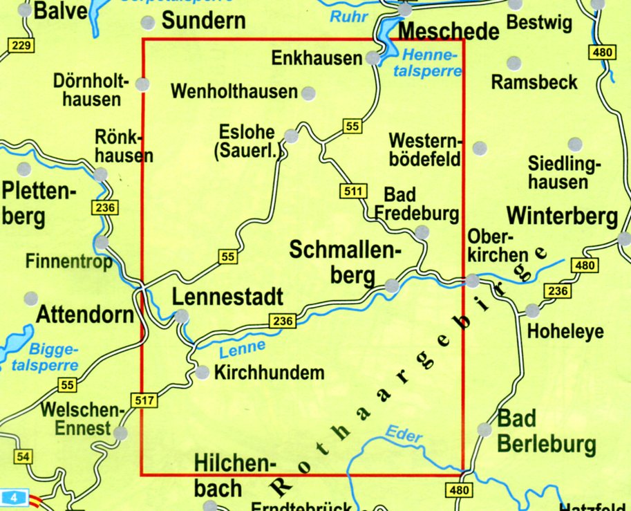 Kaarten en gidsen > Wandelen > Wandelkaarten > Europa > Duitsland > West-Duitsland > Nordrhein-Westfalen > Sauerland > NRW-59 Lennestadt, Schmallenberg, Kirchhundem | wandelkaart 1:25.000