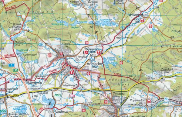 Gedetailleerde fietskaart van populaire regio's in Duitsland: Nürnberg & omgeving