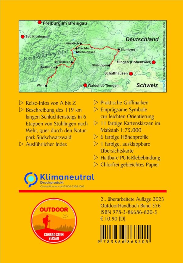 Ausgehend vom Städtchen Stühlingen unweit der Schweizer Grenze führt der Schluchtensteig auf knapp 120 km einmal quer durch den Naturpark Südschwarzwald. Dieser Wanderführer bietet neben einer detaillierten Beschreibung des Streckenverlaufs alle praktischen Informationen, die zur zuverlässigen Planung und sicheren Durchführung der Wanderung erforderlich sind. Wissenswertes und Hintergründe zu kulturellen Sehenswürdigkeiten, Fauna, Flora und Geologie lassen das Erlebnis auf einer der attraktivsten Routen in Deutschland noch intensiver werden. Bei der Orientierung helfen detaillierte Karten zu jeder Etappe und eine Übersichtskarte in der Umschlagklappe.
