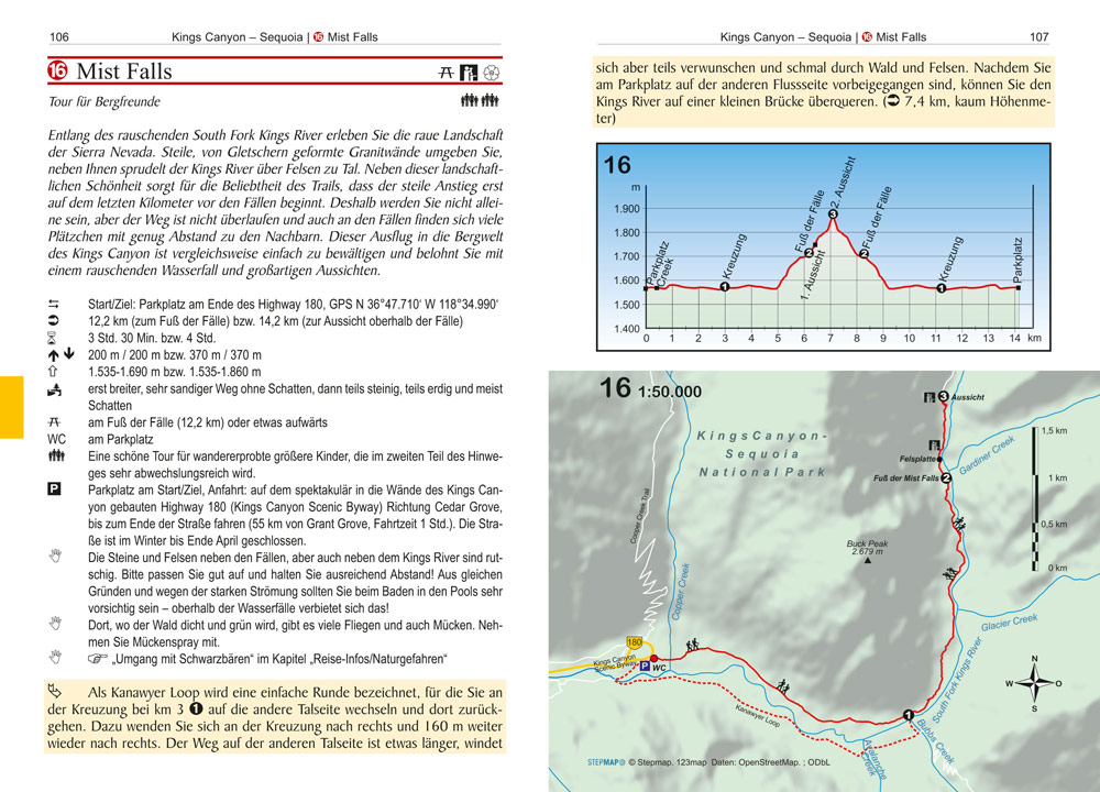 Die Nationalparks im Westen der USA – um dieses Traumziel wirklich zu entdecken, sollten Sie unbedingt dort wandern gehen! Zu Fuß erleben Sie hautnah die Wüste von Joshua Tree, mit dem Grand Canyon die faszinierendste Schlucht der Welt, die bis zu 1.000 m hohen Granitfelsen und die Wasserfälle von Yosemite und mit den Mammutbäumen die stillen Giganten in Sequoia, Kings Canyon und Redwood. Dieser Wanderführer stellt 23 Touren unterschiedlichster Längen und Schwierigkeitsgrade in fünf Nationalparks in Kalifornien und Arizona vor. Karten und Höhenprofile komplettieren die genauen Wegbeschreibungen, außerdem informiert die Autorin zu jedem Weg über Anreise, Rastmöglichkeiten usw. Spannende Informationen rund um die Wanderungen, Naturlandschaften und Flora und Fauna ergänzen die Wanderbeschreibungen. GPS-Tracks können kostenlos heruntergeladen werden.