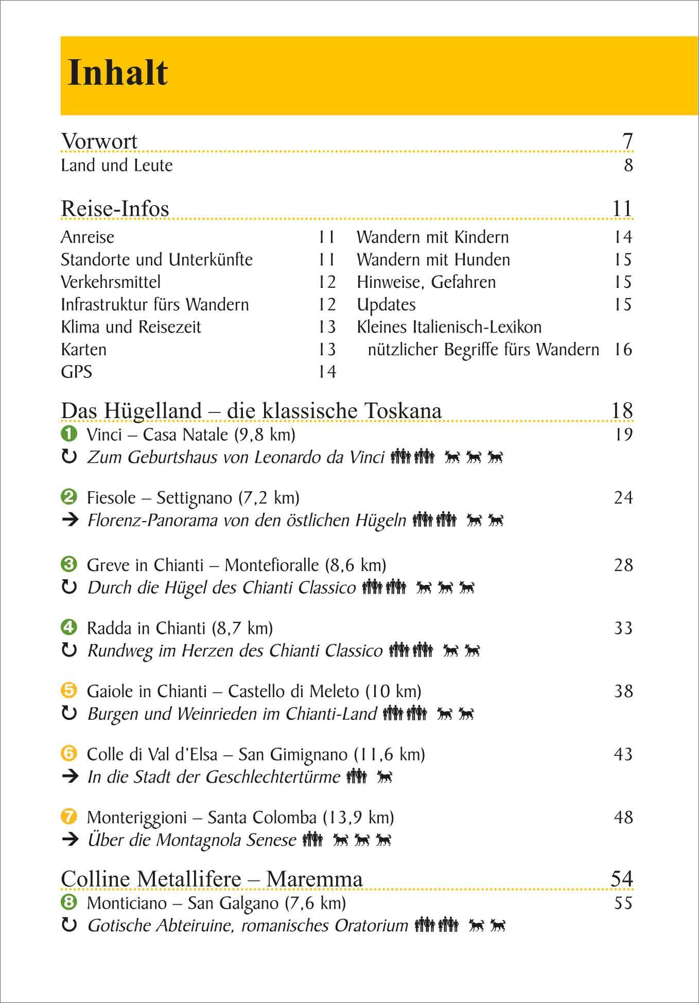 Uit de vele mogelijkheden zijn 30 mooie wandelingen geselecteerd die door bekende en onbekende regio's van Toscane leiden, zodat de landschappelijke en culturele rijkdom in al zijn volheid tot uiting komt: