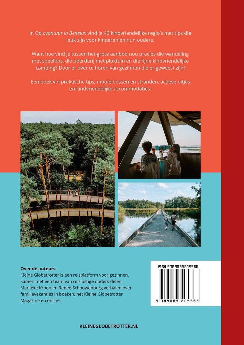 In Op avontuur in Benelux vind je 40 kindvriendelijke regio's in België, Nederland en Luxemburg met tips die leuk zijn voor kinderen én hun ouders. Want hoe vind je tussen het grote aanbod nou precies die wandeling met speelbos, die boerderij met pluktuin en die fijne kindvriendelijke camping? Door er over te horen van gezinnen die er geweest zijn! Een boek vol praktische tips, mooie bossen en stranden, actieve uitjes en kindvriendelijke accommodaties en campings.