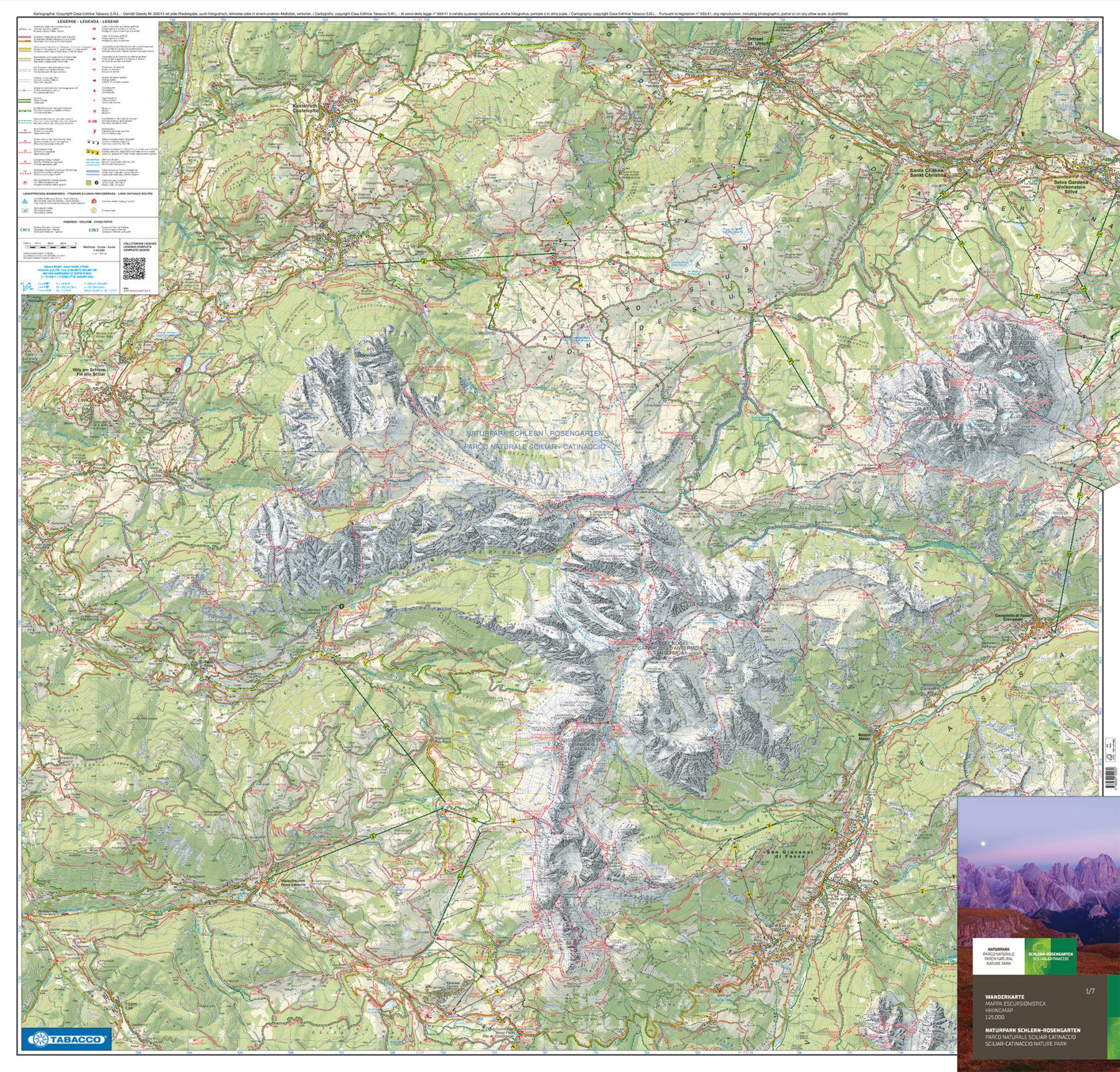 Kaarten en gidsen > Wandelen > Wandelkaarten > Europa > Zuid-Europa / Middellandse Zee > Italië > Noord-Italië > Zuid-Tirol, Dolomieten > PA-11 Parco Naturale dello Sciliar - Catinaccio 1-7 | Tabacco wandelkaart