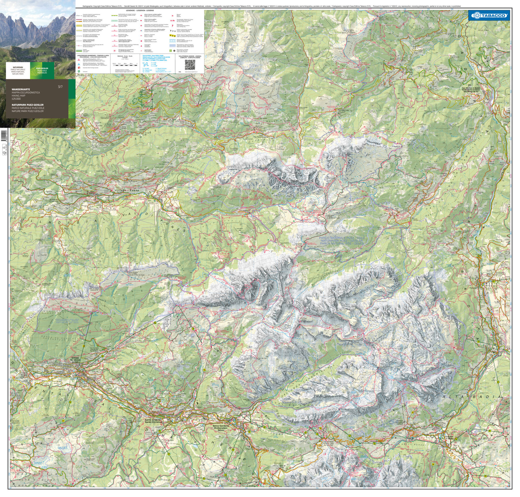 Kaarten en gidsen > Wandelen > Wandelkaarten > Europa > Zuid-Europa / Middellandse Zee > Italië > Noord-Italië > Zuid-Tirol, Dolomieten > PA-13 Parco Naturale Puez-Odle 3-7 | Tabacco wandelkaart