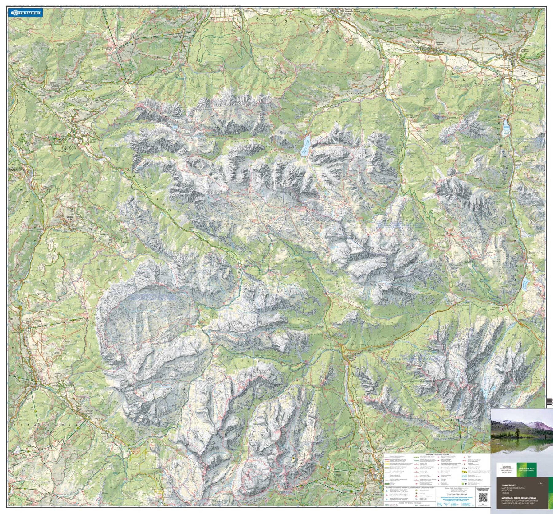 Kaarten en gidsen > Wandelen > Wandelkaarten > Europa > Zuid-Europa / Middellandse Zee > Italië > Noord-Italië > Zuid-Tirol, Dolomieten > PA-14 Parco Naturale Fanes-Sennes-Braies 4-7 | Tabacco wandelkaart