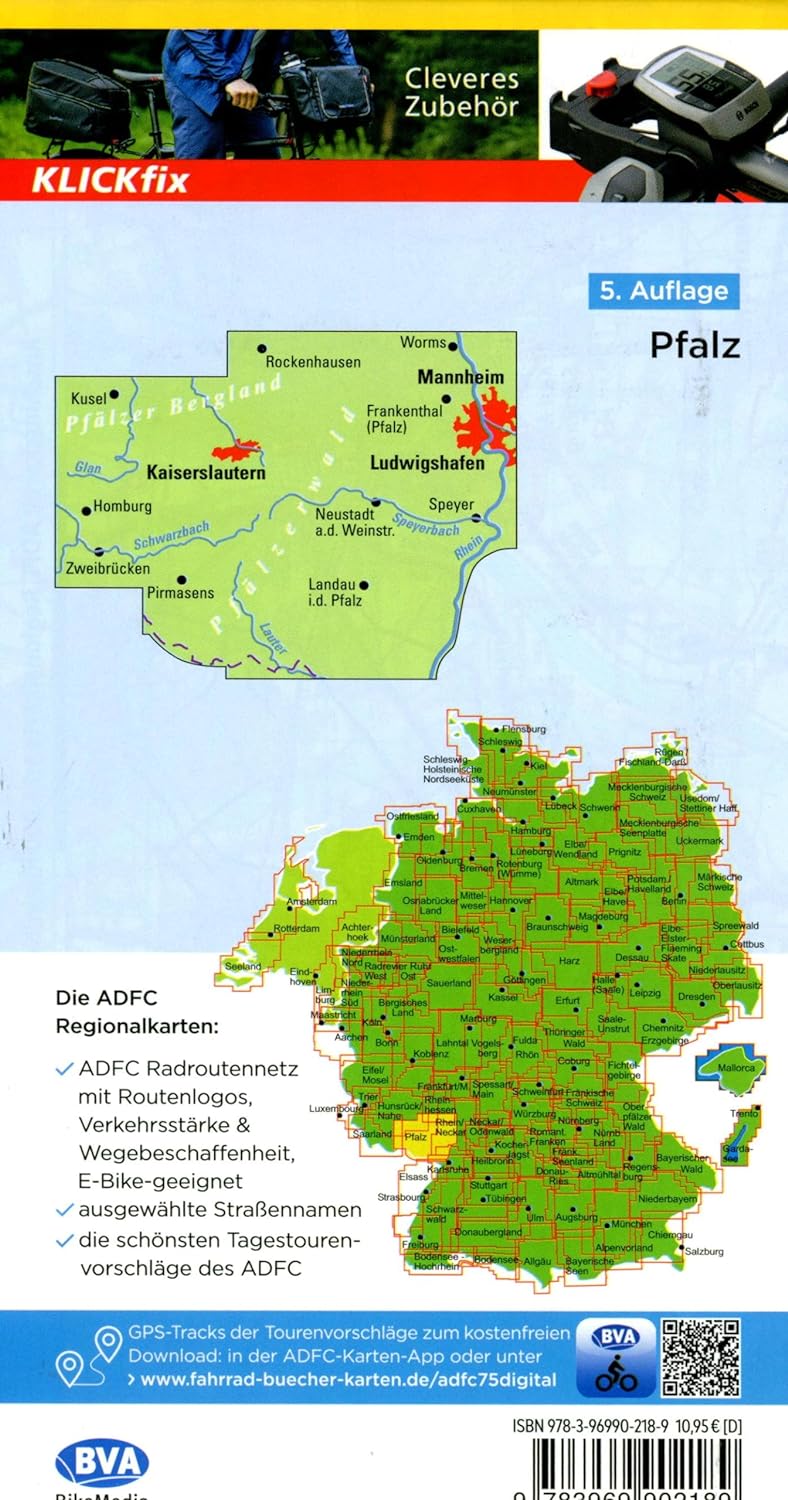 Kaarten en gidsen > Fietsen > Fietskaarten > Europa > Duitsland > West-Duitsland > Rheinland-Pfalz (met Eifel) > Pfalz, Deutsche Weinstrasse, Rheinhessen > Pfälzerwald, Mannheim | fietskaart 1:75.000