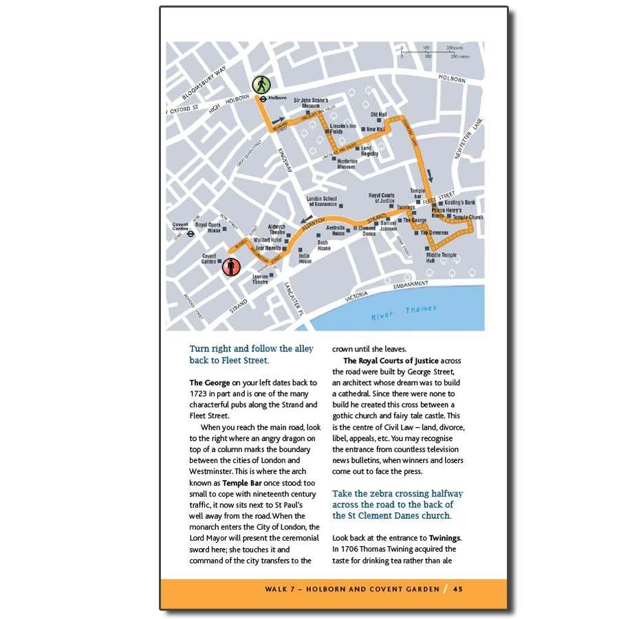 De gids bevat daarnaast 15 korte wandelingenop enige afstand rondom het centrum door het Londen van Mayfair en Clerkenwell naar Smithfield en Soho. Vele intrigerende verhalen en fascinerende geschiedenissen bij elke wandeling. Eenvoudige routebeschrijvingen en eenvoudig te volgen kaarten. Geïllustreerd met mooie foto's.