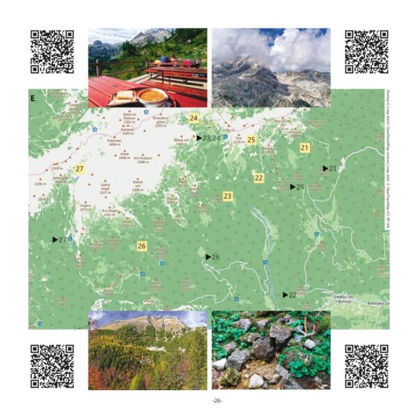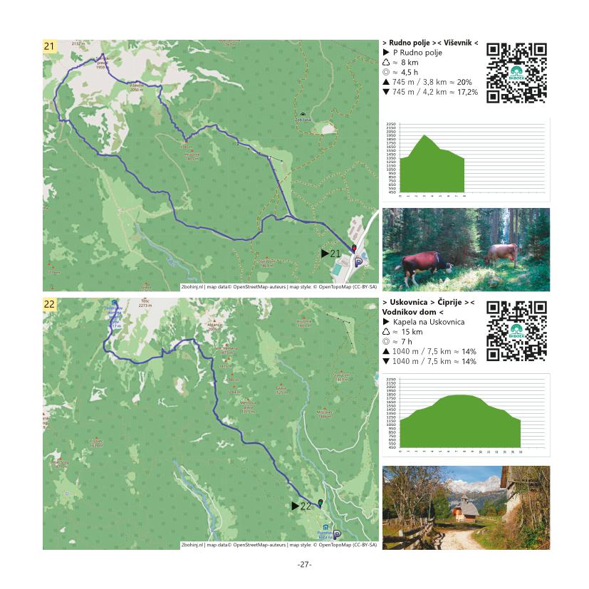 Mooi verzorgd en bijzonder informatief boek over de flora van het mooie Bohinjdal, aan de voet van de Triglav (hoogste top van de Julische Alpen). Naast een uitgebreide en uitbundig geïllustreerde plantengids is het ook een wandelgids: het boek bevat daartoe gedetailleerde kaarten, hoogteprofielen per wandeling, aanduiding van de lengte en QR-codes die verwijzen naar de digitale routes die je op je telefoon of GPS kunt zetten. Geen routebeschrijvingen. Het is dan ook geen boek om mee te nemen op je tocht