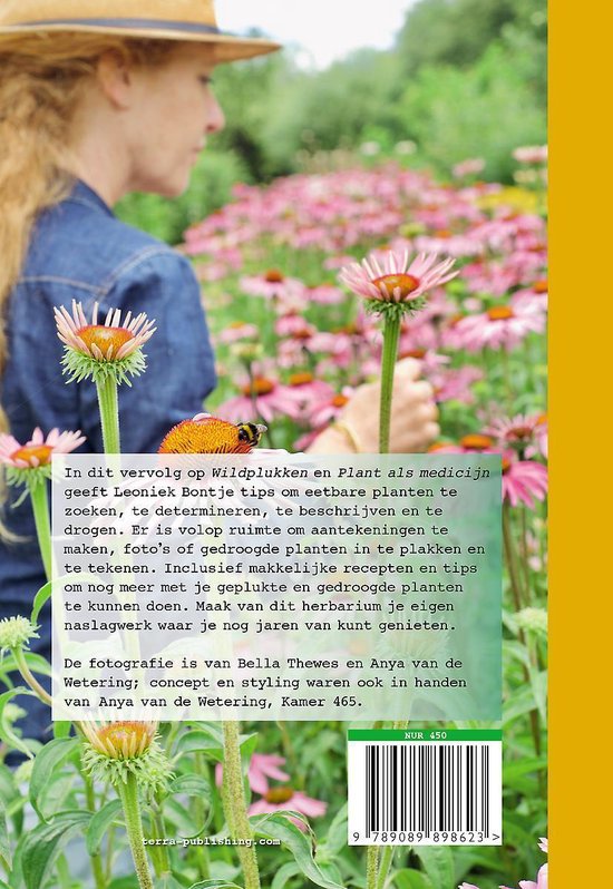 In dit vervolg op Wildplukken en Plant als medicijn geeft Leoniek Bontje tips om eetbare planten te zoeken, te determineren, te beschrijven en te drogen. Er is volop ruimte om aantekeningen te maken, foto's of gedroogde planten in te plakken en te tekenen. Inclusief makkelijke recepten en tips om nog meer met je geplukte en gedroogde planten te kunnen doen. Maak van dit herbarium je eigen naslagwerk waar je nog jaren van kunt genieten.De fotografie is van Bella Thewes en Anya van de Wetering; concept en styling waren ook in handen van Anya van de Wetering, Kamer 465.