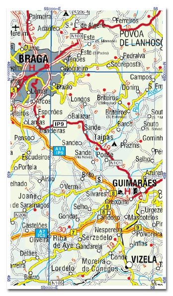 Een van de weinige kaarten op een redelijk gedetailleerde schaal voor weggebruikers. Volgens kenners is de kaart helaas nogal onnauwkeurig. De Michelinkaart van Portugal biedt minder detail, maar is wel betrouwbaarder.