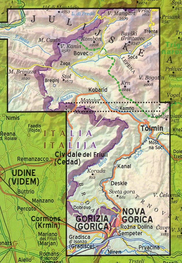 Kaarten en gidsen > Wandelen > Wandelkaarten > Europa > Centraal- en Oost-Europa, Balkan, Siberië > Westelijke Balkan > Slovenië > Posocje | wandelkaart 1:40.000