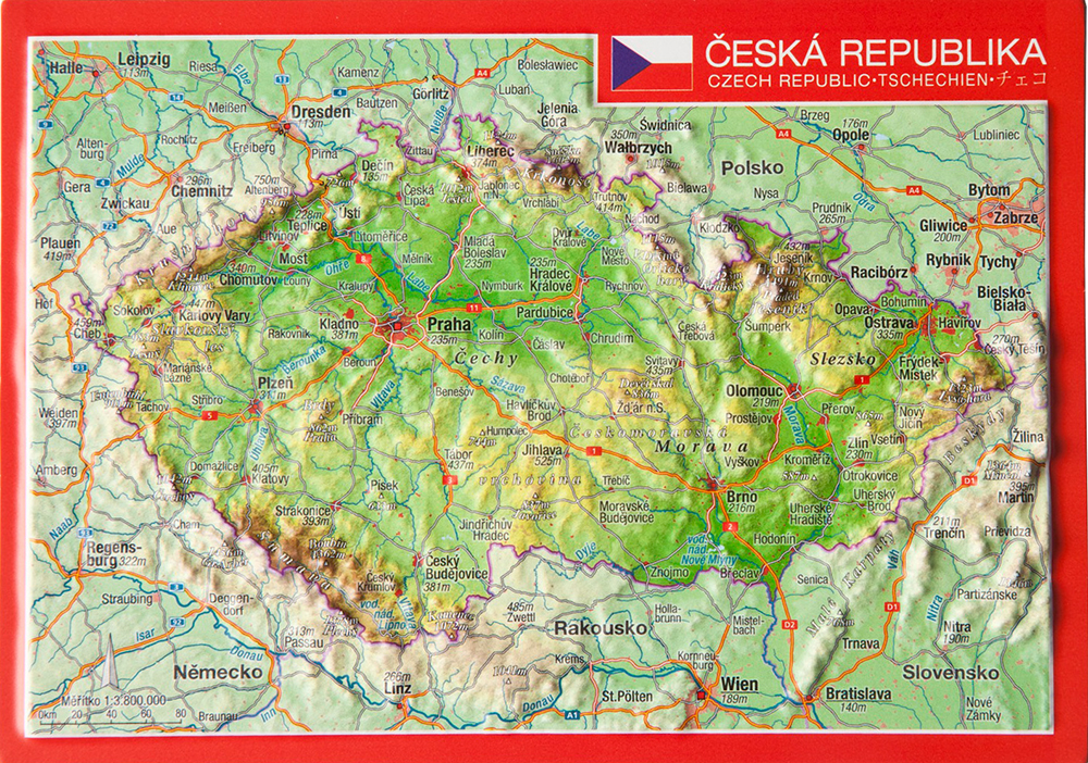 Kaarten en gidsen > Reizen vanuit je luie stoel > Wandkaarten > Europa > Centraal- en Oost-Europa, Balkan, Siberië > Tsjechië, Slowakije > Tsjechië > Postkaart Tsjechië | met reliëf