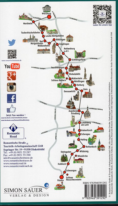 Mooi geïllustreerde gids, met beschrijvingen van alle plaatsen en bezienswaardigheden van deze fraaie route van Würzburg naar Füssen, langs de grens van Beieren met Baden-Württemberg, van noord naar zuid.