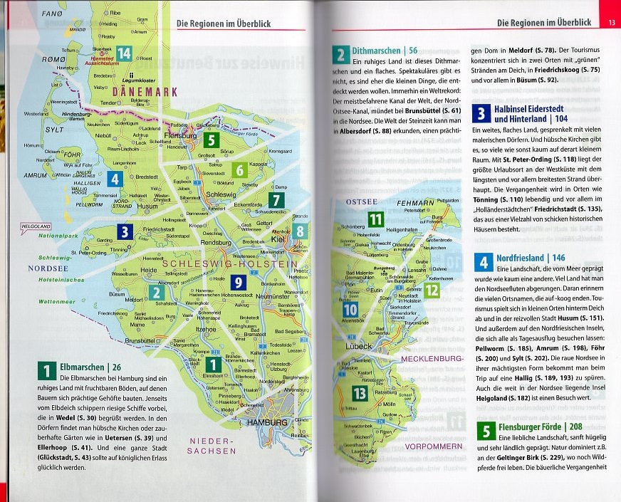 Deel uit een reeks uitstekende reisgidsen met enerzijds gedetailleerde info. over land, volk, geschiedenis, cultuur, etc., anderzijds veel praktische info. m.b.t. hotels (incl. prijzen), restaurants, vervoer, adressen van autoverhuur, beste reistijd, etc. Duitstalig. | Die beliebte Nordseeküste Schleswig-Holsteins mit diesem kompakten Reiseführer voller Reise-Know-how entdecken: - Alle Strände, alle Orte an der Küste! Von Brunsbüttel über Friedrichskoog, Büsum, St. Peter-Ording, Husum, Nordstrand, ... bis Rickelsbüller Koog. - Essen, Trinken und Unterkünfte für jeden Geldbeutel und Geschmack. - Spannende Museen, in denen Anfassen ausdrücklich erwünscht ist. - Anreisetipps, die den beinahe obligatorischen Stau vorm Hamburger Elbtunnel vermeiden helfen. - Wat is Watt? Eine schwarze, schlickige Wüste? Von wegen! - Interessante Ausflugsziele im Hinterland, nach Sylt, Hamburg oder Helgoland. - Schiffsausflüge zu Inseln und Halligen, auf Grachten und Kanälen. - Könnt ji Plattdüütsch snacken? Tipps und Kniffe auch zur nonverbalen Kommunikation. - Das Wesen der Nordlichter, eine kleine Überlebenshilfe. - Skurrile, amüsante Geschichtchen rund um stolze Nordfriesen und sture Dithmarscher. +++ Ausstattung: 276 Seiten, komplett in Farbe, zahlreiche Fotos, 14 Stadtpläne und Übersichtskarten, ausführliches Register, Kartenverweise und Griffmarken, robuste PUR-Bindung.